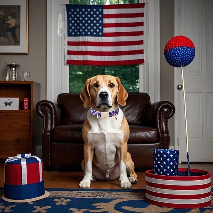 Lionet Paws 4th of July Dog Collar- Cute Blue Red Sundea Dog Collars with Plastic Buckle, Light Adjustable Dog Collars for Small Dogs