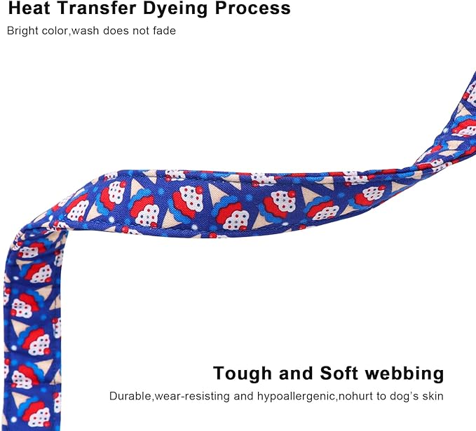 Lionet Paws 4th of July Dog Collar- Cute Blue Red Sundea Dog Collars with Plastic Buckle, Light Adjustable Dog Collars for Medium Dogs