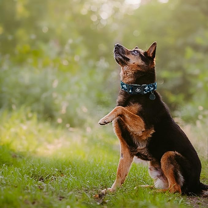Elegant little tail Dog Collar, Dinosaurs Print Blue Puppy Male Adjustable Cotton Pet Collar with Quick Release Buckle for Small Medium Large Dogs