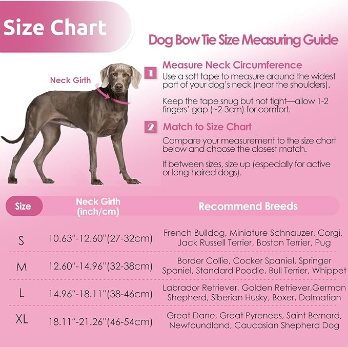 - Perfect Fit for Every Pup: Our dog bow tie collar come in 4 sizes (S-XL) to suit breeds from Chihuahuas to Golden Retrievers! The adjustable neck magic tape ensures a snug yet comfortable fit, so your furry friend stays stylish without fuss
