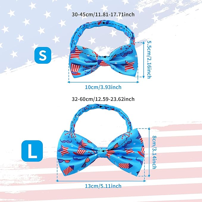 - Patriotic dog bow ties size: Small, neck size around 11.81"-17.71" ( 30-45cm),bows size 3.93*2.16";Large,neck size around 12.59"-23.62" ( 32-60cm),bows size 5.11*3.14"