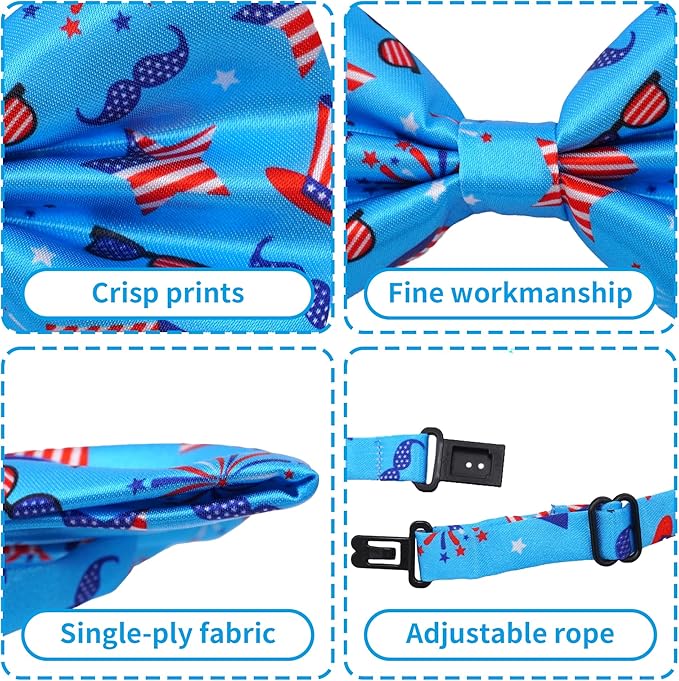 - Printing patterns:Independence day flag day theme,pet bow ties with asjustable ties come in patriotic holiday fashionable design, enable your pet to be cuter and cooler