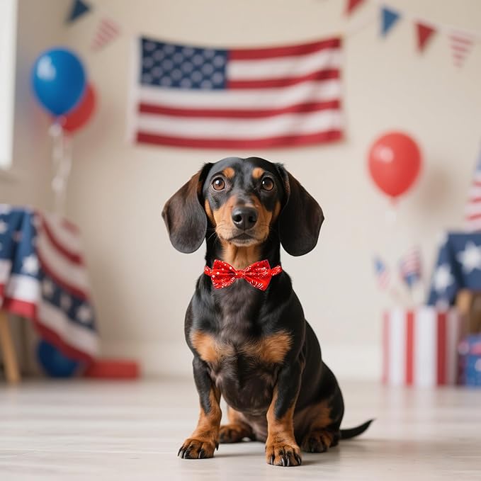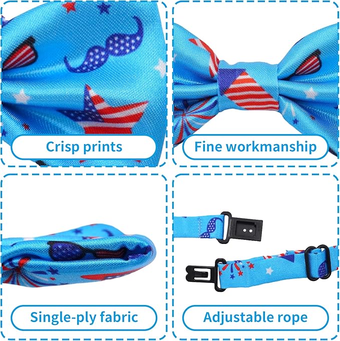 - Printing patterns:Independence day flag day theme,pet bow ties with asjustable ties come in patriotic holiday fashionable design, enable your pet to be cuter and cooler