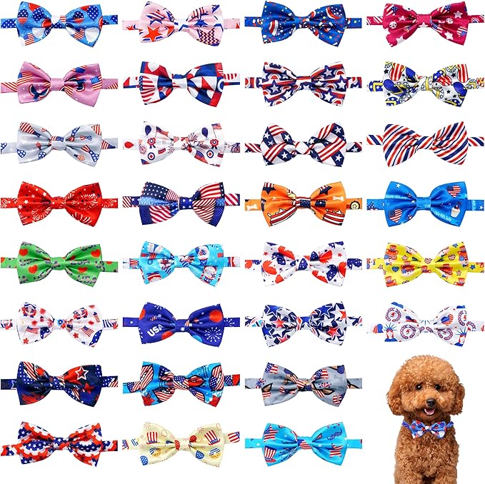 30 PCS Patriotic Dog Bow Ties for Small Dogs 4th of July Dogs Bowties Bulk with Adjustable Ties Independence Day Bow Ties Party Grooming S