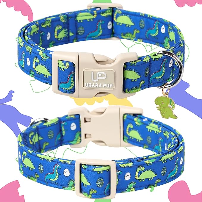 - Fun & Playful Dinosaur Theme: The UP URARA PUP dog collar features a vibrant summer design with various cute dinosaurs, dinosaur eggs, and a blue background, making it a perfect choice for pet owners who want to add a playful touch to their dog's summer wardrobe.
