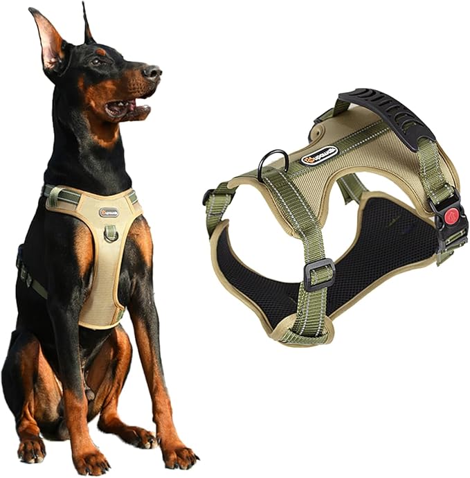 - Reinforced top handle on the back of the harness allows you to quickly grab your dog when needed—perfect for navigating tight spaces, lifting over steps, or controlling behavior during training. Offers better handling for energetic or reactive dogs.