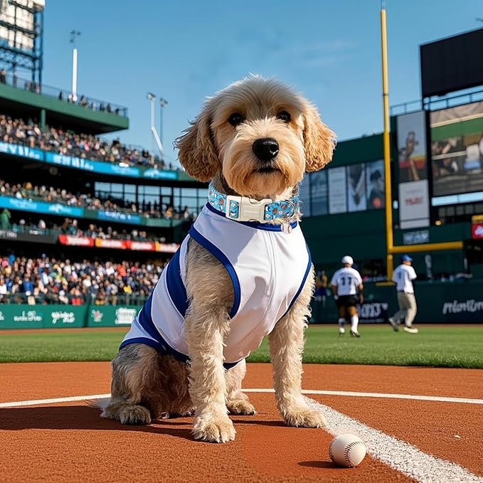 - HIGH QUALITY: ❤We focus on making high-quality pet products, and pay attention to the details of each baseball dog collar. We use high-quality plastic buckle, which are both good-looking and durable. ❤And easy to put on and take off. Small blue dog collar can be adjusted by roll buckle, D-ring can be used to hang a dog tag and attach to dog leash.