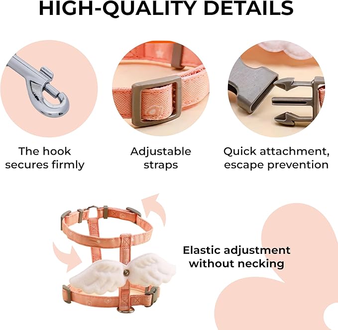 Angel Wings Pet Harness and Leash Set for Dogs & Cats, Adjustable I-Shaped Chest Strap, Padded Anti-Break Rope