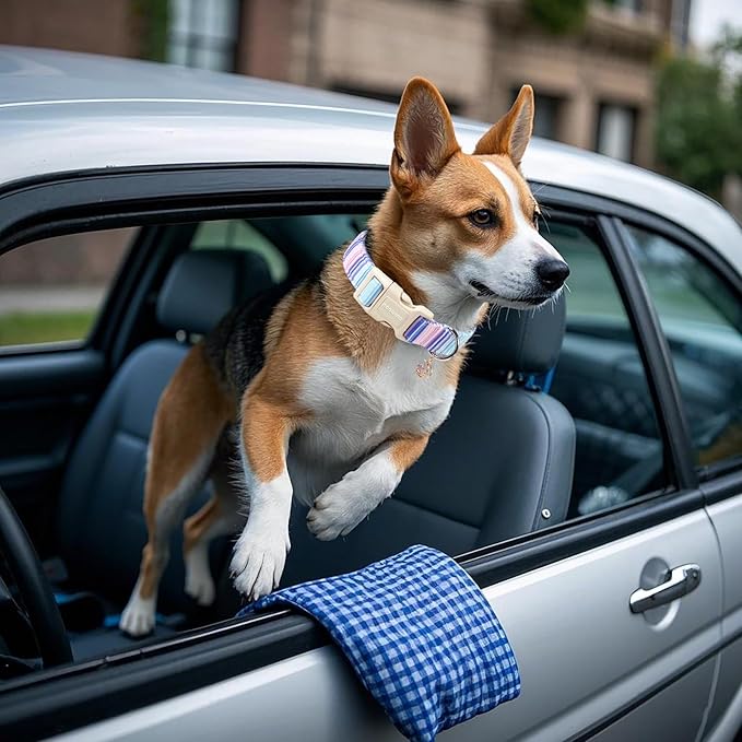 - [ Summer Style] This blue stripped dog collar is perfect for summer holidays, wedding, parties and family picnics. You can give your dog this gift before summer, let your Furbaby have its own hawaiian party in summer.