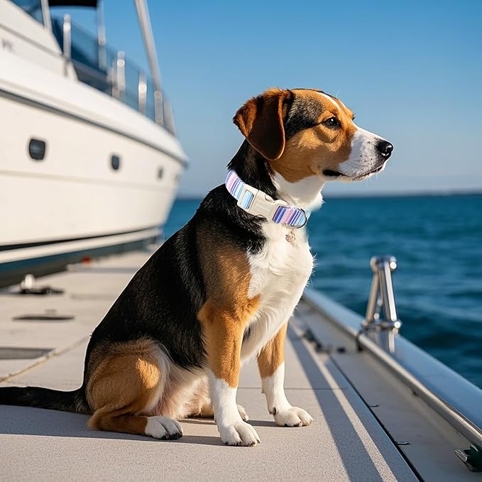 - [ Summer Style] This blue stripped dog collar is perfect for summer holidays, wedding, parties and family picnics. You can give your dog this gift before summer, let your Furbaby have its own hawaiian party in summer.