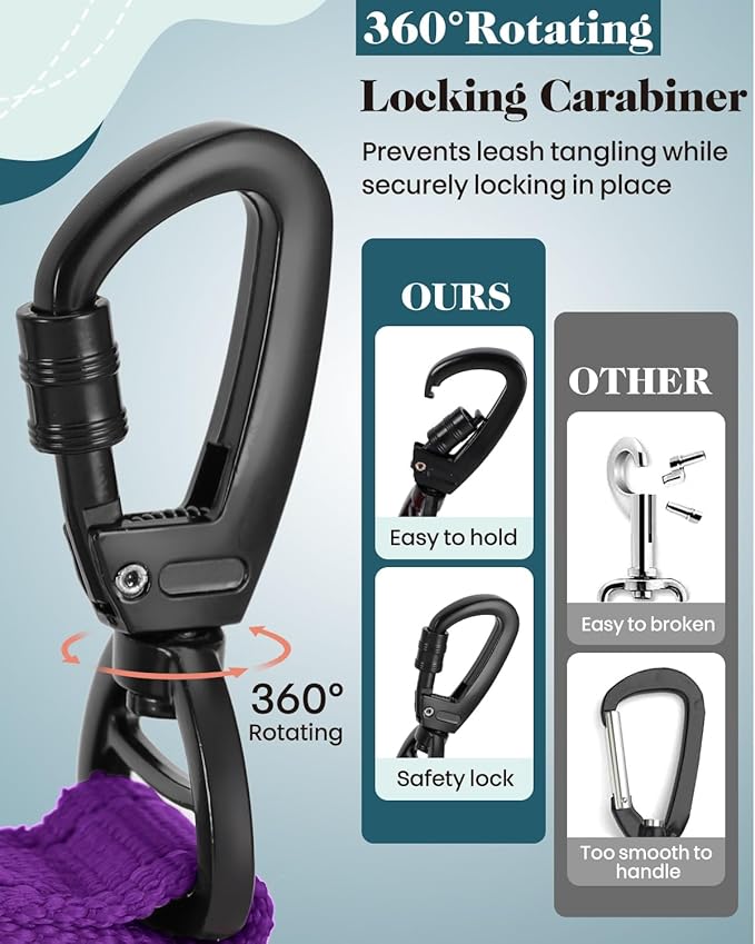 - 🌟 𝐁𝐮𝐧𝐠𝐞𝐞 𝐋𝐞𝐚𝐬𝐡: The bungee leash absorbs pulling force and impact, protecting your wrists while letting your dog release energy freely.