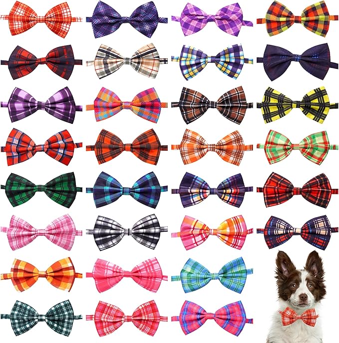 Plaid Dog Bow Ties Bulk 30 Pcs Adjustable Dogs Bowties for Large Dogs Bow Ties Pet Party Grooming L
