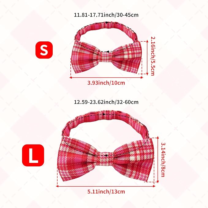- Plaid dog bow ties size: Small, neck size around 11.81"-17.71" ( 30-45cm),bows size 3.93*2.16";Large,neck size around 12.59"-23.62" ( 32-60cm),bows size 5.11*3.14"