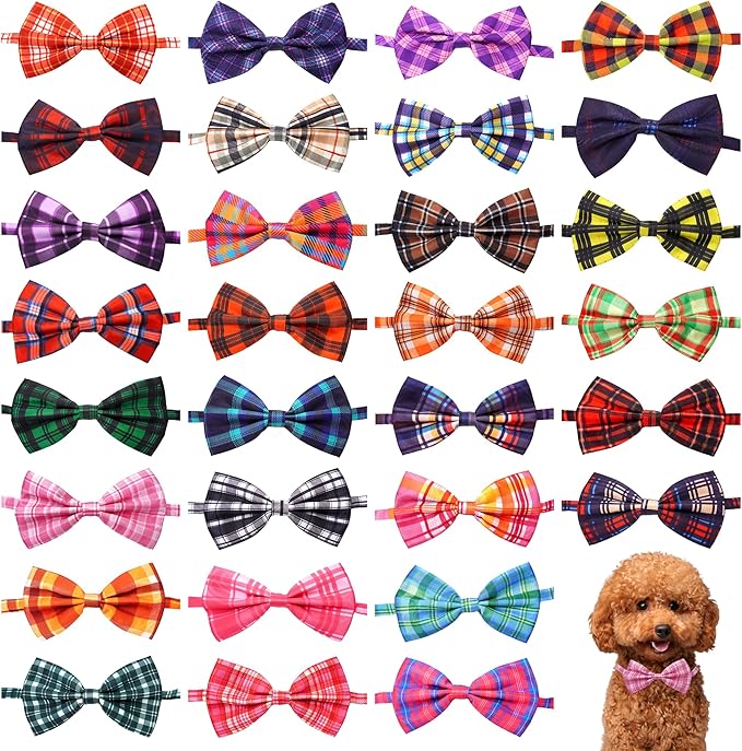 Plaid Dog Bow Ties Bulk 30 Pcs Adjustable Dogs Bow Ties for Small Cats Assorted Plaid Dog Bowties Grooming Party S