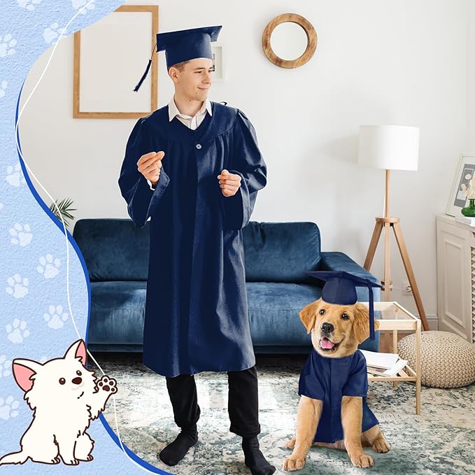 - Dog Graduation Cap and Gown: this puppy graduation cap and gown kit includes a traditional hat, adjustable black cord can make sure the hat does not fall off easily paired with a stylish robe, a simple yet elegant style that's for any graduation ceremonies; Let your pet take center stage at any event