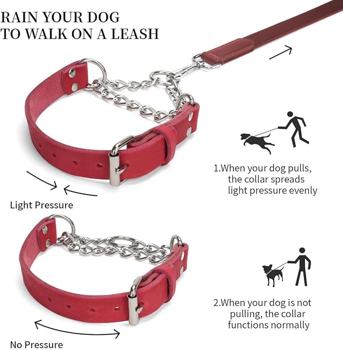 - 【Premium Quality Leather】Made from 100% genuine leather and features a stainless-steel chain, our dog collars provides unmatched durability and comfort.