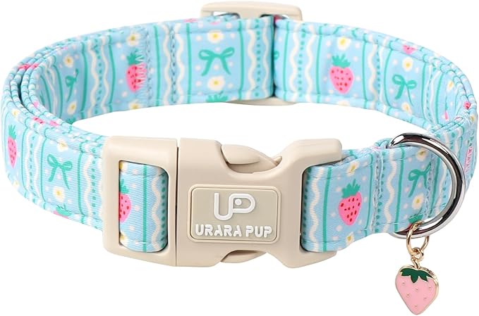- Cute Strawberry Design: Features adorable strawberries and floral patterns with a charming strawberry pendant—perfect for sweet and stylish pups.