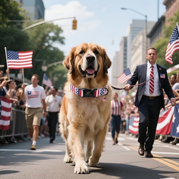 - American Flag Collar: Classic American flag pattern collar is especially suitable for 4th of July. Flag dog collar better shows your dog’s patriotism. The UP URARA PUP dog collar features a vibrant summer design with flag and a blue background, making it a perfect choice for pet owners who want to add a playful touch to their dog's summer wardrobe.