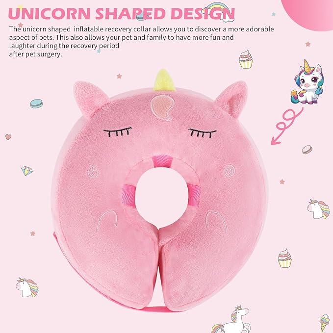 IEUUMLER Inflatable Recovery Dog Collar, Protective Donut Cone, Adjustable Soft Collar for Dog and Cat After Surgery Prevent from Biting & Scratching EU002 - Unicorn M+