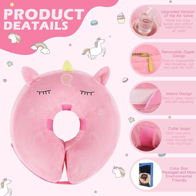 IEUUMLER Inflatable Recovery Dog Collar, Protective Donut Cone, Adjustable Soft Collar for Dog and Cat After Surgery Prevent from Biting & Scratching EU002 - Unicorn M