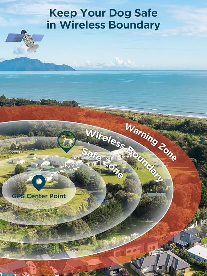 GPS Wireless Dog Fence, Electric Fence Collar with 3 Warning Modes, Wireless Dog Fence for Outdoor Use,Range 65-3290 FT, Waterproof& Rechargeable Pet Containment System for Most of Dogs