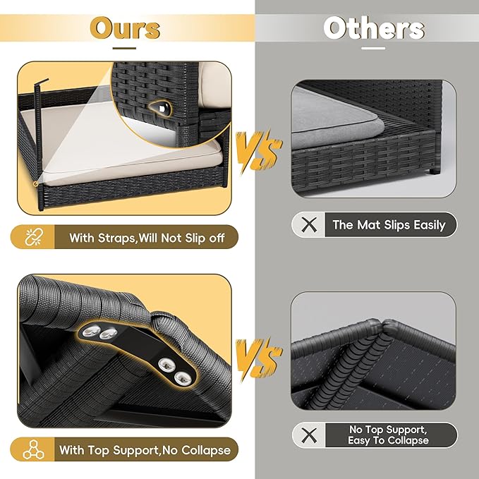 - Weather-Resistant Design: Constructed with handwoven rattan panels and a reinforced steel frame, this rattan dog bed is built to withstand outdoor elements. With an integrated canopy for 360° shade coverage, it protects your pets from 98% of harmful UV rays and sudden rain showers.