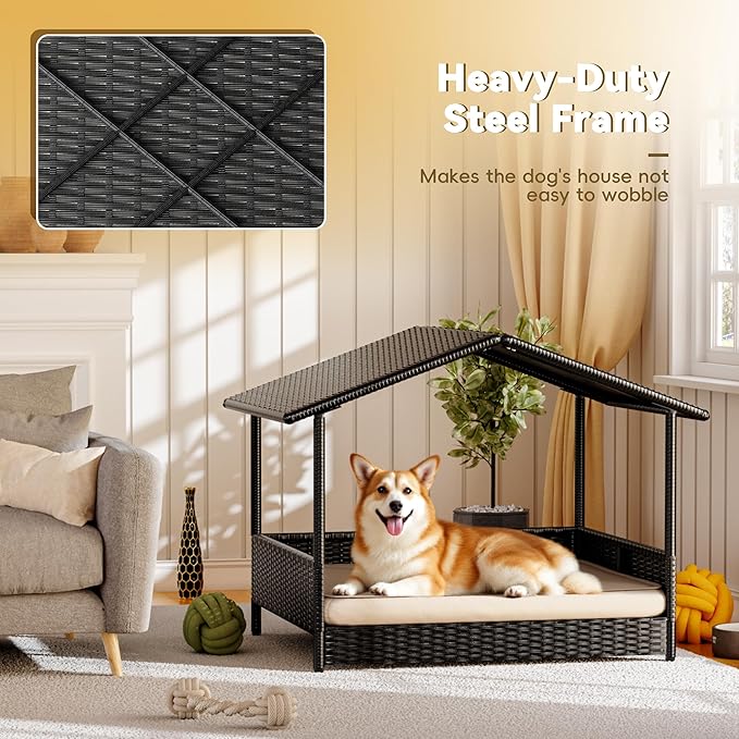 - Easy Assembly & Maintenance: Enjoy hassle-free setup with our wicker dog house that requires no tools for assembly—complete it in under 25 minutes with the included illustrated manual. The removable cushion with a convenient zipper design allows for effortless cleaning, making maintenance a breeze.