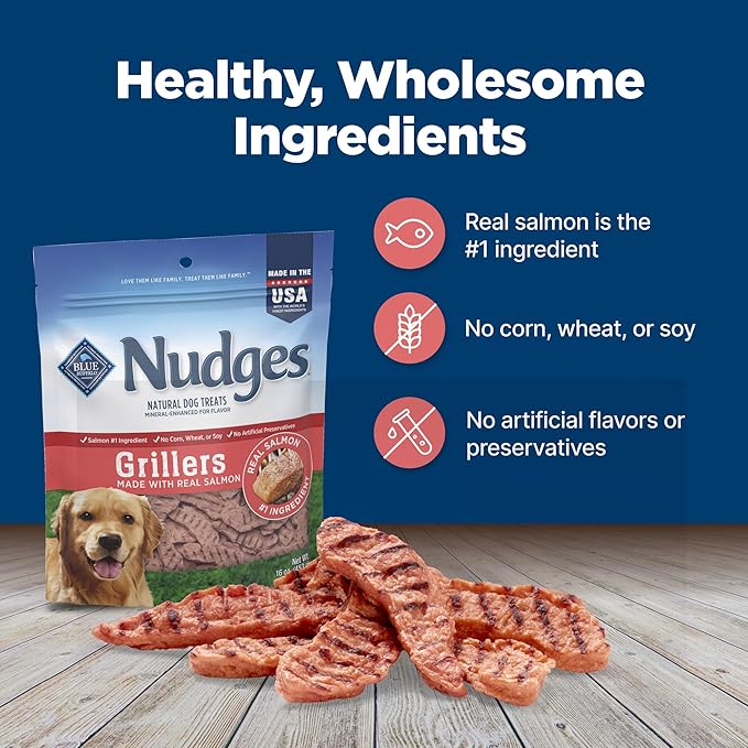 Blue Buffalo Nudges Grillers Natural Dog Treats, Made in The USA with Real Salmon, 16-oz. Bag