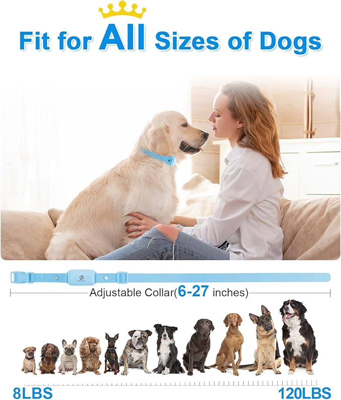 - Comfortable for All Sizes of Dogs: This training collar Receiver is mini. Meas.2.3(W)*1.4(W)*1(H)inch, only Weight 0.12Lb. Thin and lightweight. The adjustable nylon collar fits 6-27 inches. The e collar is very comfortable for small medium large dogs or other pets (8lbs -120lbs). The remote is ergonomic designed. It is easy to hold and keep track of