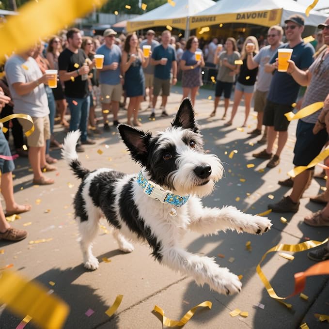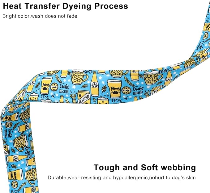 Lionet Paws Summer Dog Collar- Cute Beer Dog Collars with Plastic Buckle,Blue Yellow Light Adjustable Dog Collars for Small Medium Dogs