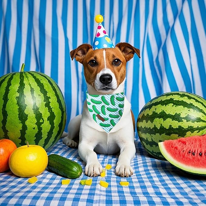 Lionet Paws Summer 2pcs Dog Bandanas, Dinosaur Dog Scarf Bib Premium Fabric, Happy Cucumbers Blue Bandanas for Small Medium Dogs Pets