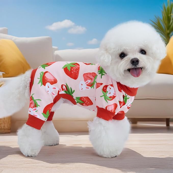 - Cute Pattern design: The dog onsies are printed with different fruit patterns. Fresh and cute patterns make your pet look more adorable and eye-catching. The 4 pack dog pjs is suitable for families with multiple pets, ensuring daily pet changes