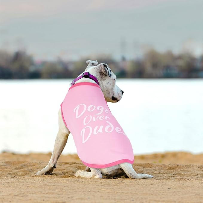- Funny: Make your dog's personality shine with this 2-pack of sleeveless dog shirts featuring the sassy "Dogs Over Dudes" print. Perfect for daily wear, social media snaps, or special outings. Ideal for owners who love to showcase their dog's unique style