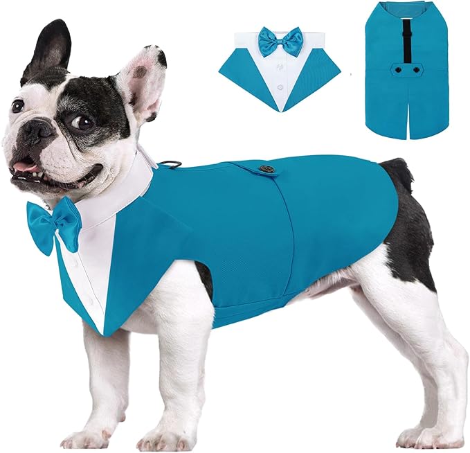 - Two Piece Set: AOFITEE classic dog suit includes 1 piece Dog Tuxedo shirt and 1 Piece Bandana Collar (a bowtie on the bandana is removable). Each part can be used separately, practical and convenient for various situations, and match many outfits
