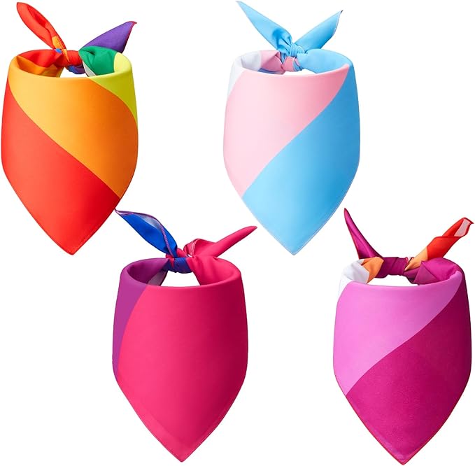 - 4 Pcs Pride Flag Bandanas: our trans pride bandanas contains 4 pcs rainbow bandanas with many styles; Each piece of bisexual handkerchief create a rainbow effect with different colors to show gay pride attitudes are appropriate for marches, events in the LGBT community and each rainbow headscarf measures about 21.3 x 21.3 inches/ 54 x 54 cm, which is large enough for any purpose